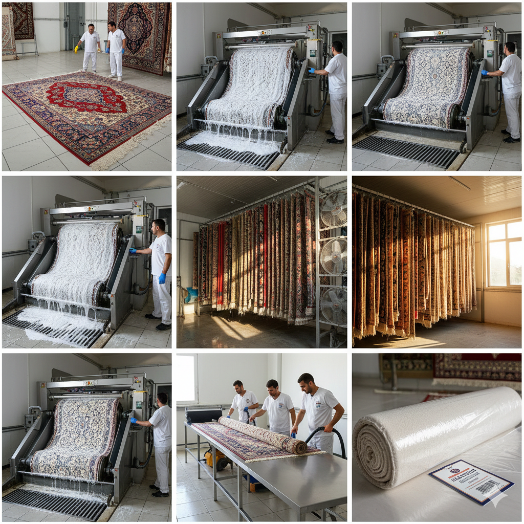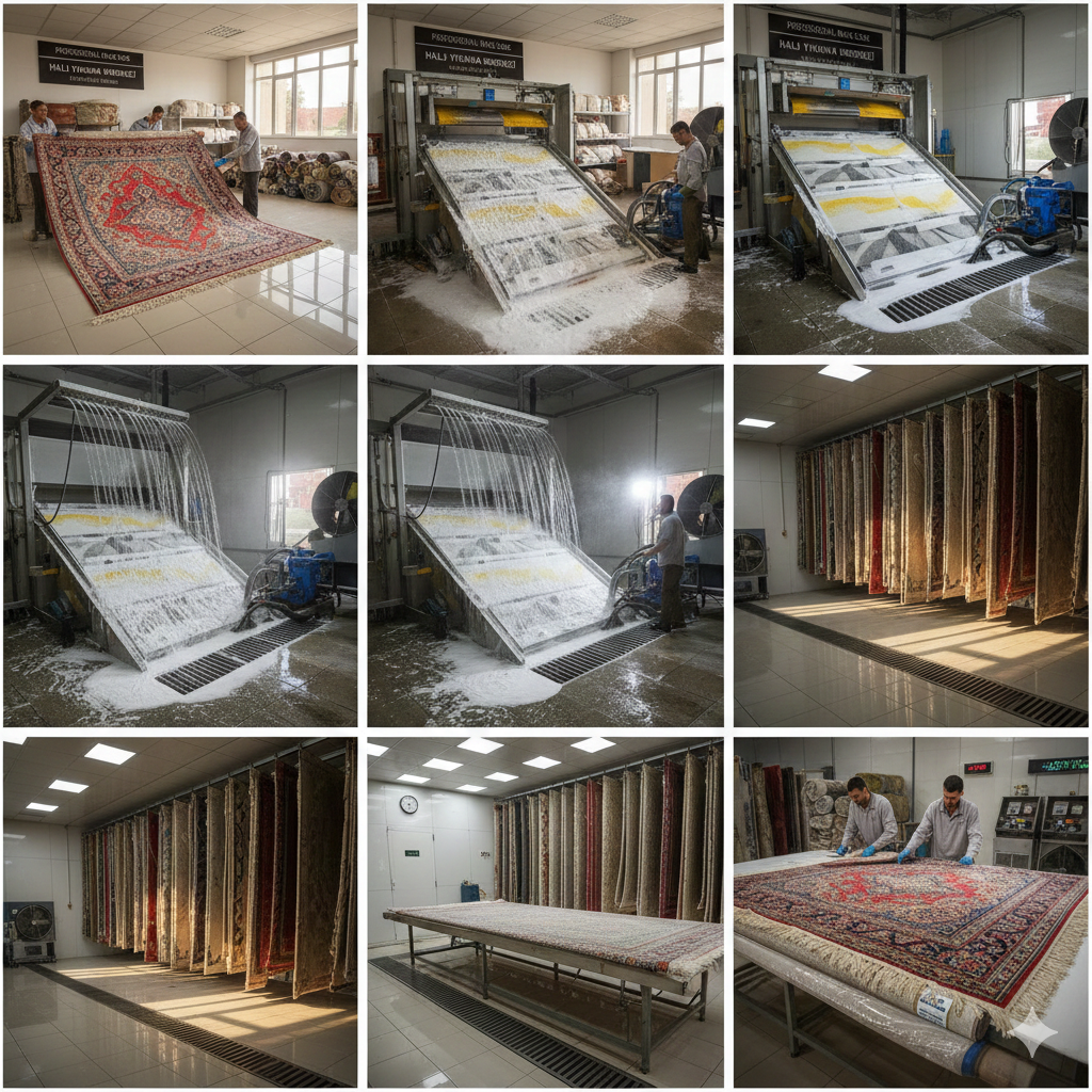 Son teknoloji tam otomatik yıkama makinelerimiz, bitkisel özlü anti-alerjik şampuanlarımız ve kapalı kurutma odalarımız ile halılarınızı mevsim şartlarından etkilenmeden, tam hijyen garantisiyle temizliyoruz. Yıkama sürecimiz; toz alma, derinlemesine yıkama, durulama, sıkma, kurutma ve kalite kontrol aşamalarından oluşmaktadır.